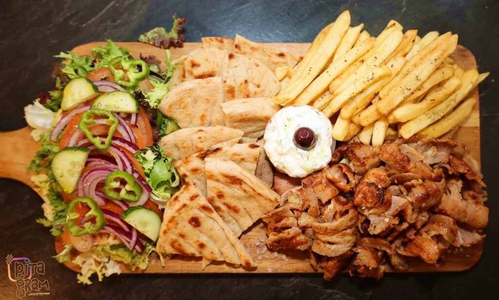 Tallrikar Gyros Fläsk FacebookInstagram Gyros – delen inkluderar: Salad mix, tomat, lök, tzatziki, pommes Your browser does not support the video tag. Mer Mix Souvlaki Mix Souvlaki – delen inkluderar: 1st fläskspett, 1st kycklingspett, salad mix, tomat, sås (majonnäs), tzatziki, lök, pommes Mix Gyros Mix Gyros – delen inkluderar: Gyros fläsk, gyros kyckling, salad mix, tomat, sås (majonnäs), tzatziki, lök, pommes Mammas Grekiska Köttbullar Mammas Grekiska Köttbullar – delen inkluderar: Pita bröd, tzatziki, tomat, lök, pommes Mammas Grekiska Köttbullar Mammas Grekiska Köttbullar – delen inkluderar: 3st spett, salad mix, tzatziki, tomat, lök, pommes Panseta Panseta (sidfläsk) – delen inkluderar: Pita bröd, tzatziki, tomat, lök, pommes Soutzoukakia Soutzoukakia (lamn och köttfärsbiff) – delen inkluderar: 2st spett, salad mix, tomat, lök, sås (majonnäs), pommes Haloumi – Vegetarisk Haloumi - Vegetarisk: 3st spett halloumi, salad mix, tomat, sås (majonnäs), pommes Gyros Kyckling Gyros Kyckling – delen inkluderar: Salad mix, tomat, lök, tzatziki, pommes Sallad med Gyros Fläsk Denna Sallad med Gyros Flask inkluderar: Salad Mix, tomat, lök, sås (majonnäs) Panseta (sidfläsk) Panseta (sidfläsk) – delen inkluderar: Pita bröd, tzatziki, tomat, lök, pommes